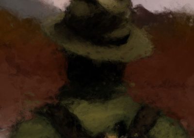 As a result of hearing the legend Olive feels impelled to paint the story. The resulting artwork is a surprise even to herself. She calls it Santa Justa in the Well.